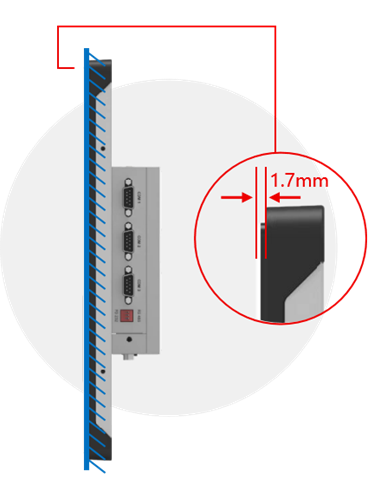 R系列专为机柜安装深度定制,业内首创1.7mm台阶,实现近乎纯平的安装。 上下左右四根边条,在机柜内部稳固固定,轻松打造无缝衔接、平整如镜的前表面效果。对于那些对产品外观有着极简追求、高度重视产品整体性的应用场景而言,R系列无疑是当之无愧的理想解决方案。 多种尺寸: 【 4 : 3 比例 】15英寸、17英寸、19英寸 【 16 : 9比例 】13.3英寸、15.6英寸、18.5英寸、21.5英寸、23.8英寸、27英寸 【16 : 10比例】10.1寸 产品特点: ● 业内首创玻璃凸出表面1.7mm结构,实现近乎纯平的效果。 ● 自主开模定制塑料前框,耐指纹版金属后盖。 ● 标准电压设计,可选宽电压输入(9-36V),兼容多种电源。 ● 可选配Android或X86主板解决方案,满足多种应用场景。 ● 多种接口和可扩展GPIO,提供高级连接能力。 ● 背后额外附带标准VESA孔,安装方式更灵活。 壁挂式安装 ——L系列:对称美学的优雅方案关键字:壁挂架安装、桌面底座安装,AB面无漏孔、背后标准VESA孔 |